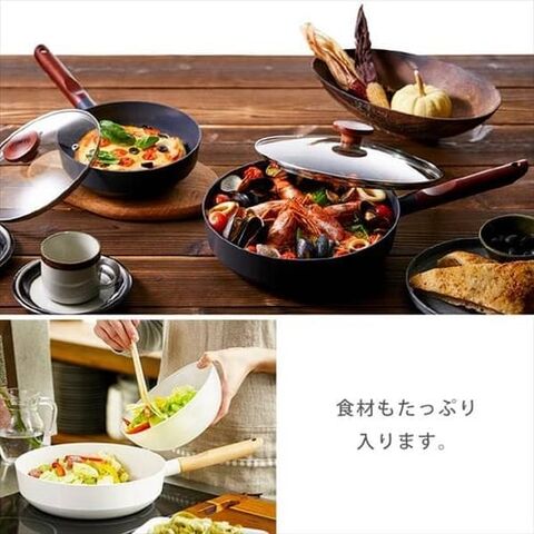 食材もたっぷり入り、焼く、煮る、深さを生かした様々な料理がフライパンひとつで。