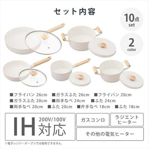 フライパン・鍋10点セット IH対応 ルオント ホワイト LUO-SE10W