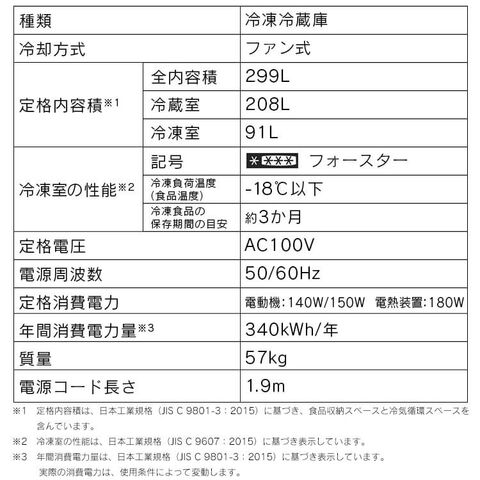 ※2 冷凍室の性能は、日本工業規格(JISC9607:2015)に基づき表示しています。