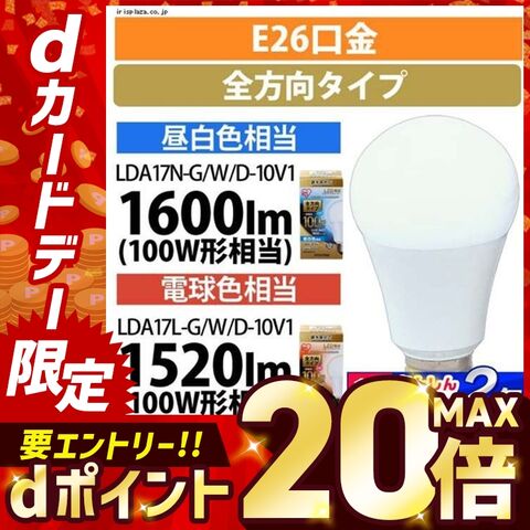 【2個セット】LED電球 E26 全方向タイプ 調光器対応 100W形相当 電球色相当 LDA17L-G/W/D-10V1 【安心延長保証対象】 [iris]