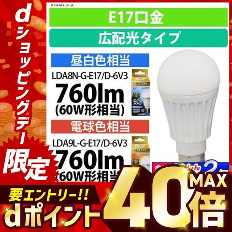 [2個セット] LED電球 E17 60W 昼白色 広配光 調光器 広配光タイプ 調光器対応 60W形相当 昼白色相当 LDA8N-G-E17/D-6V3 アイリスオーヤマ 【安心延長保証対象】 [家電]