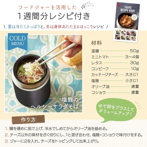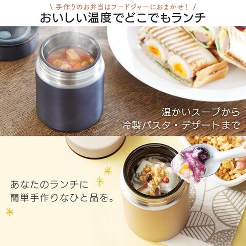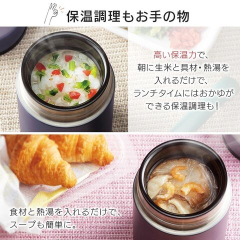 保温・保冷両用なので、温かいスープや汁物はもちろん、サラダやフルーツ、冷たい食べ物にも使用できます。