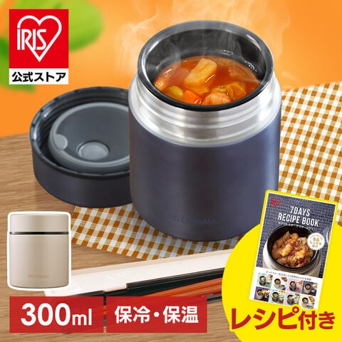 スープジャー 300ml 保温 保冷 ランチジャーフードジャー 少量 お弁当 おしゃれ アイリスオーヤマ お味噌汁 スープ レシピブック SFJ-300 ネイビー