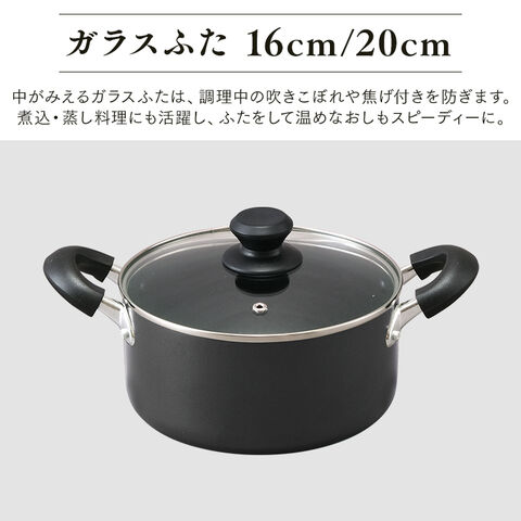 ひとり~2人暮らしに便利なフライパン・なべ・ガラスふたのセットです。新生活にもピッタリ。