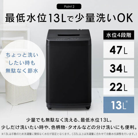水位は47L/34L/22L/13L(手動)の4段階。