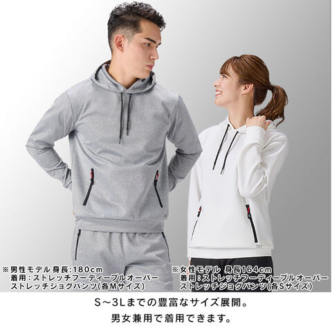 軽くて良く伸びるから動きやすい、ストレッチフーディープルオーバー。