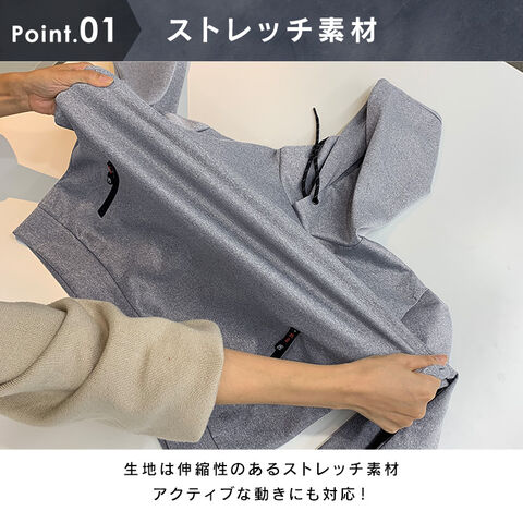 軽くて良く伸びるから動きやすい、ストレッチフーディープルオーバー。