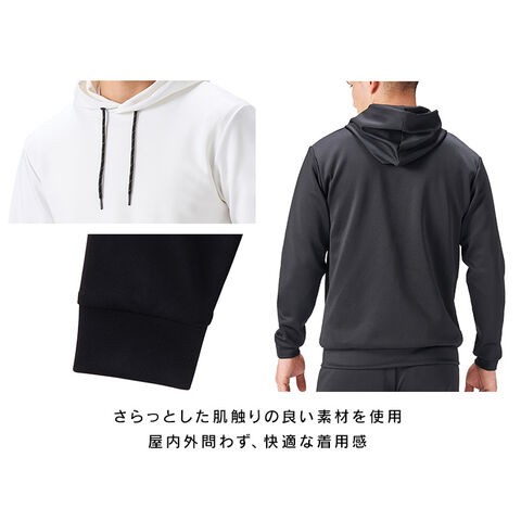 軽くて良く伸びるから動きやすい、ストレッチフーディープルオーバー。