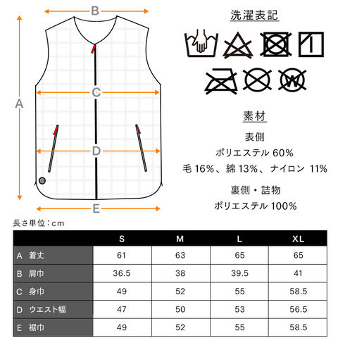 表地:ポリエステル60%、毛16%、綿13%、ナイロン11%