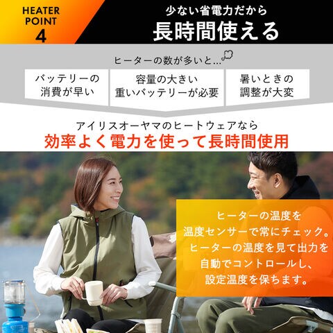 前後3つの発熱ヒーターが体の芯まで温める。