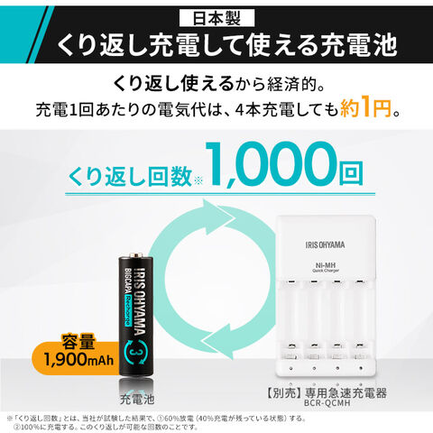 単三電池 単3電池 乾電池 4本パック ビックキャパ リチャージ 単3形 ニッケル水素電池 充電池 電池 BCR-S3MH/4Bのレビュー