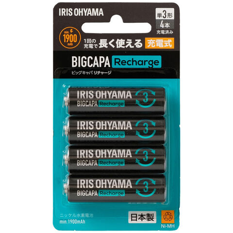 単三電池 単3電池 乾電池 4本パック ビックキャパ リチャージ 単3形 ニッケル水素電池 充電池 電池 BCR-S3MH/4B