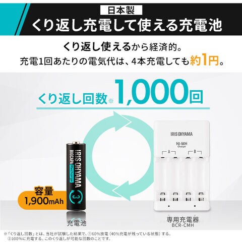 くり返し充電して使える充電池。