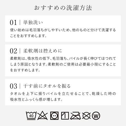 繰り返しのお洗濯でもパイルが痩せにくい。