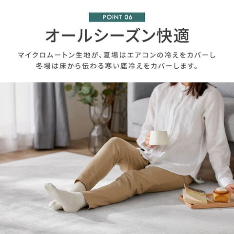 マイクロムートン生地が、夏場はエアコンの冷えをカバーし冬場は床から伝わる寒い底冷えをカバーします。