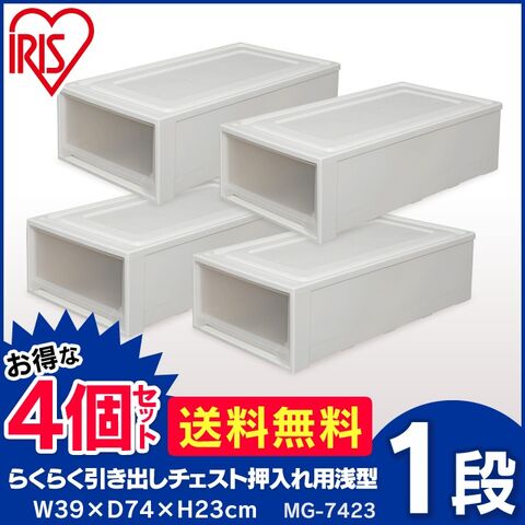 チェスト 衣装ケース 収納ケース 収納ボックス 引き出し プラスチック シンプルベッドチェスト 押し入れ クローゼット アイリスオーヤマ 衣類収納 ロングチェスト 4個セット MG-7423 ホワイト/クリア