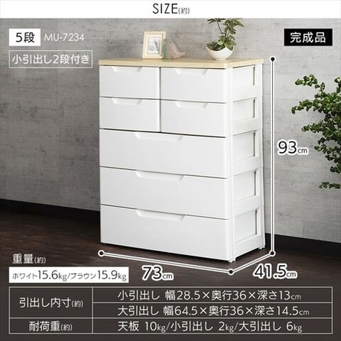 小引き出しには小物、大きい引き出しには衣類など 1つのチェストで様々なものを収納できます。