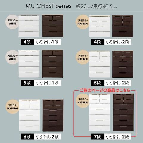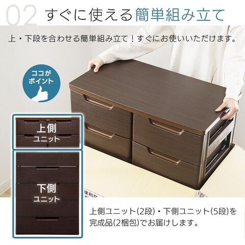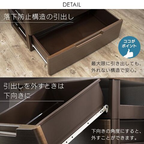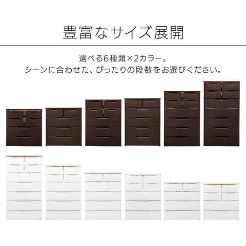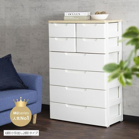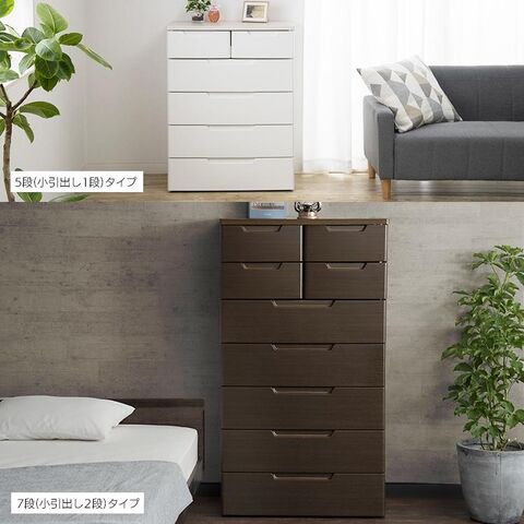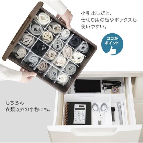 「小引き出しには小物、大きい引き出しには衣類など 1つのチェストで様々なものを収納できます。