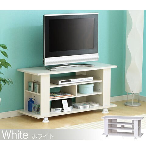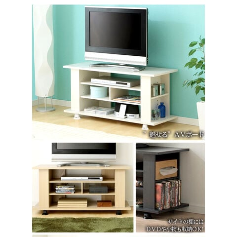 オープンタイプなので、簡単にしまったものを取り出し使用できます。サイドの棚にはDVDもしまえます。
