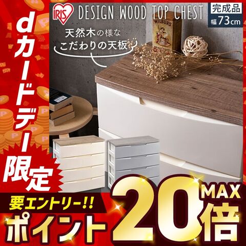 デザインウッドトップチェスト 4段 DW-724 グレー