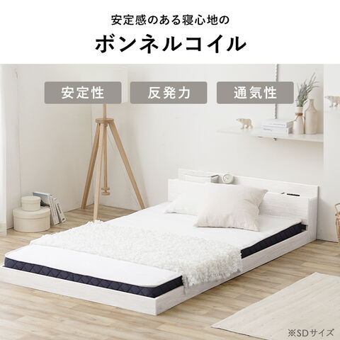 (検索用:ベッド・マットレス付き・ベッドフレーム・マットレス・セミダブル・すのこ・コンセント付き・棚・宮付き・4967576643962・4967576643979・4967576643986・アイリスオーヤマ)