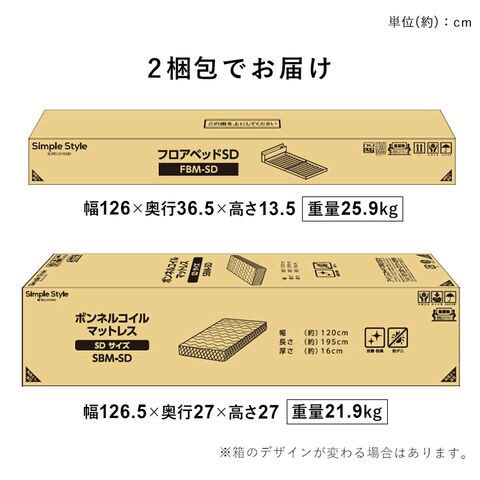 マットレス付きフロアベッドSD SBM-SD ブラウン
