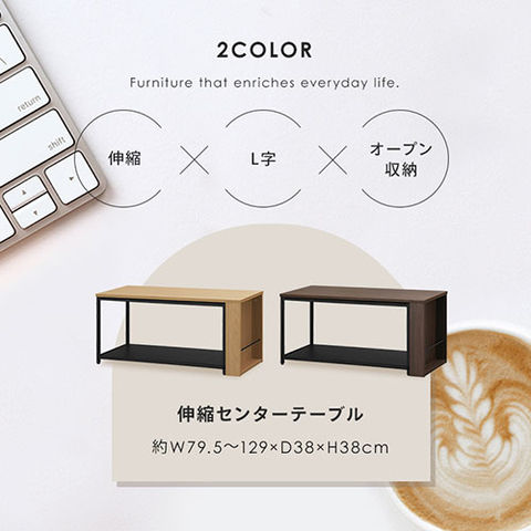 シーンに合わせてスペースを調整できる伸縮センターテーブルです。