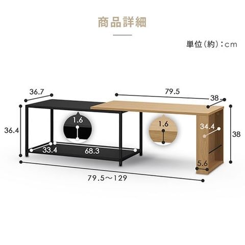 幅約79.5~129.1×奥行約38.0×高さ約38.0