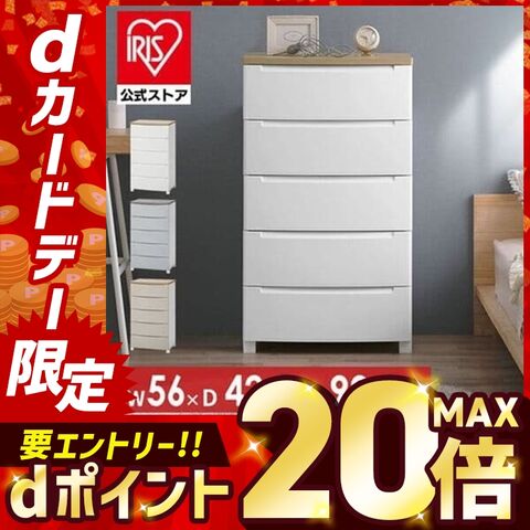 チェスト 5段 幅56cm プラスチック ほこりが入りにくい 木目調 ウッドチェスト 衣類収納 天板 収納 収納ケース タンス 衣装ケース 衣類 洋服 押入れ クローゼット シンプル おしゃれ KDMGー565WT ホワイト [インテリア]