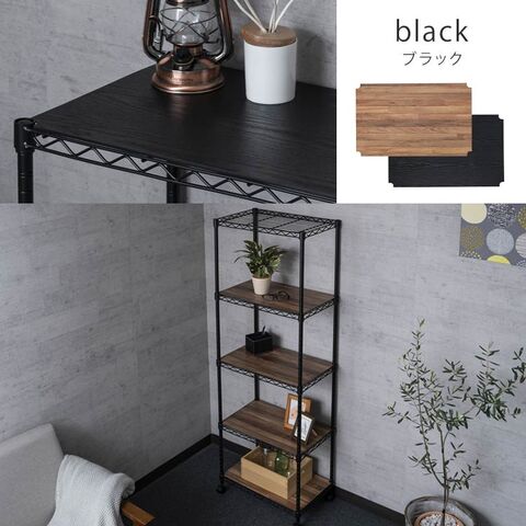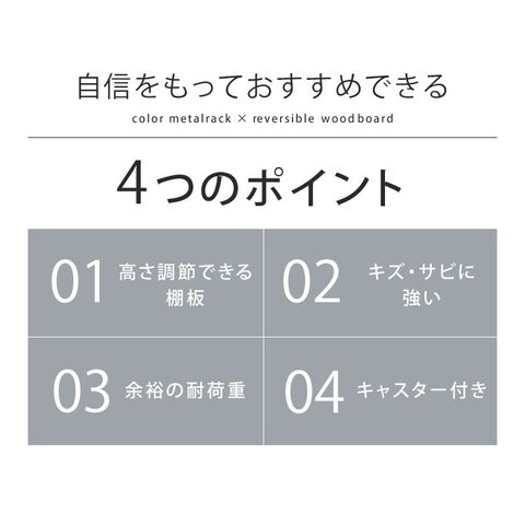 お部屋の雰囲気に合わせて選べる「リバーシブルウッドボート付き」マットカラーのメタルラック。