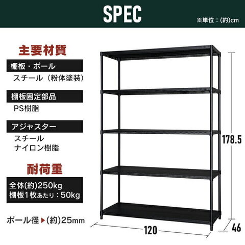 ●耐荷重(kg):全体約250、棚板1枚当たり約50