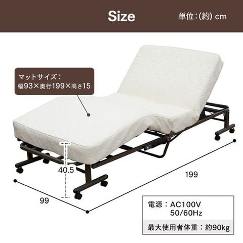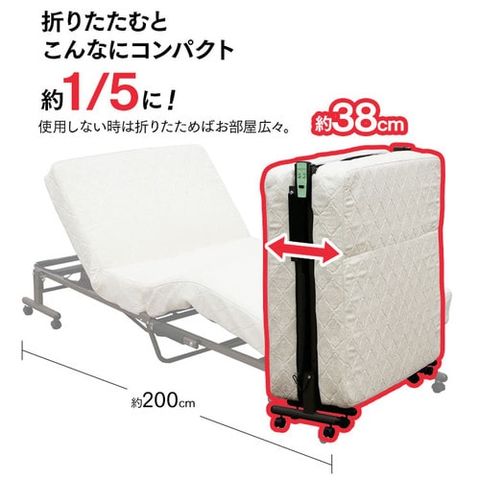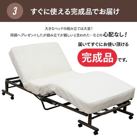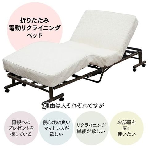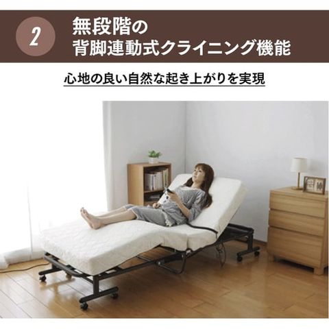 組立て不要、すぐに使える折りたたみ電動ベッドです。