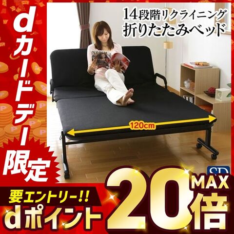 14段階リクライニング機能付きの折りたたみベッドです。