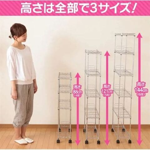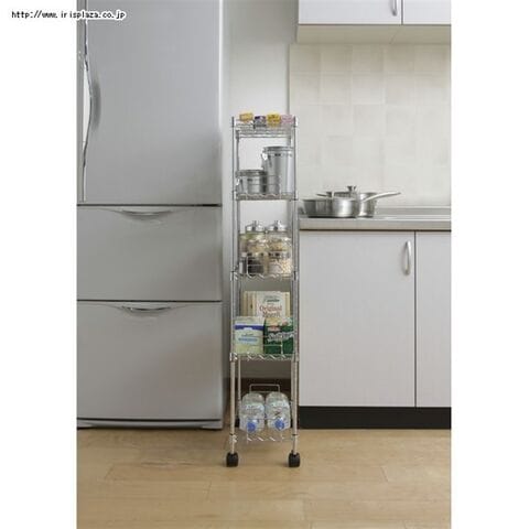 冷蔵庫とシンクの間、コンロと壁の間などにできる隙間を上手に活用することのできるメタルスリムです。