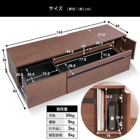【完成品】ボックステレビ台 145cm (ガラス扉付き) BTS-GD145UF ウォールナット