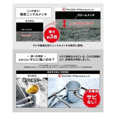 変形・変色などの劣化も少なく輝きが美しい高級品質のメタルラックです。