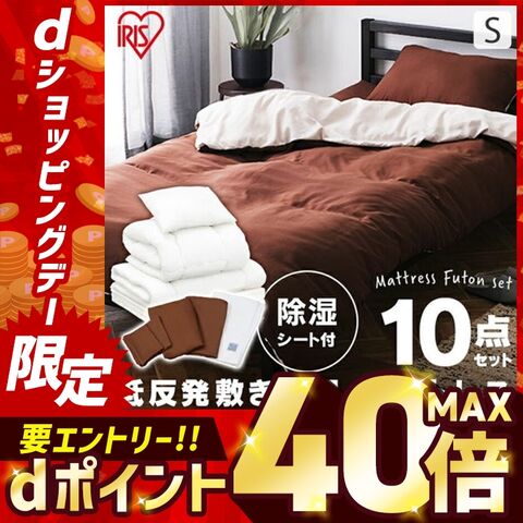 【除湿シート付】低反発敷布団+マットレス付き寝具10点セット シングル KFS-M10ST ブラウン [kgs2023]