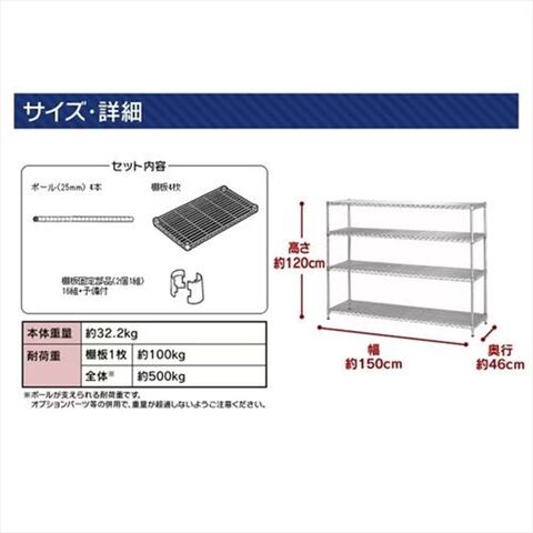 メタルラック(ポール直径25mm・棚板4枚) MR-1512 アイリスオーヤマ