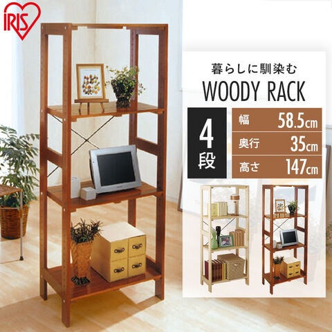 ナチュラルテイストのインテリア性の高い木製ラックです。カラーは、木の風合いを活かしたクリアと、木目を活かした落ち着いたイメージのブラウンから選べます。