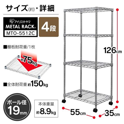 メタルミニ(ポール直径19mm・棚板4枚) MTO-5512C アイリスオーヤマ