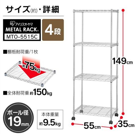 メタルミニ(ポール直径19mm・棚板4枚) MTO-5515C アイリスオーヤマ