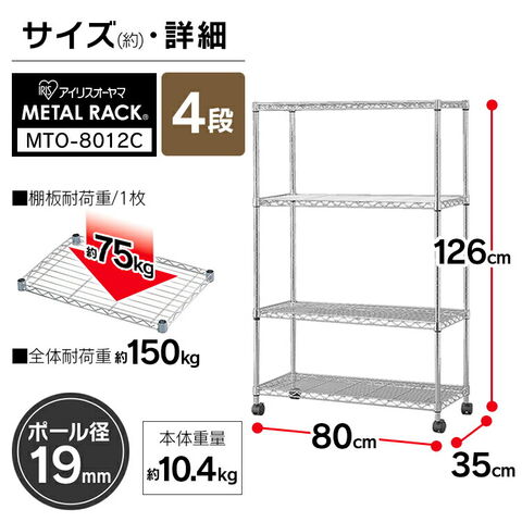 メタルミニ(ポール直径19mm・棚板4枚) MTO-8012C【fig】 アイリスオーヤマ