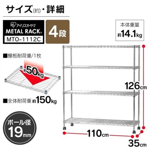 メタルミニ(ポール直径19mm・棚板4枚) MTO-1112C アイリスオーヤマ