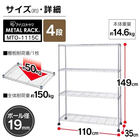 メタルミニ(ポール直径19mm・棚板4枚) MTO-1115C アイリスオーヤマ