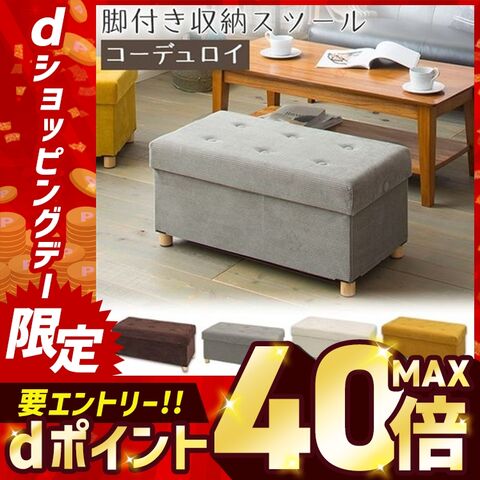 脚付き収納スツール ワイド ASSTW-76 ベージュコーデュロイ/ベージュ