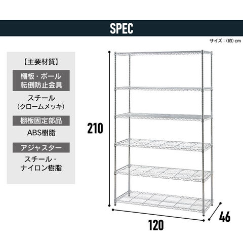 棚板・ポール・転倒防止金具:スチール(クロムメッキ)