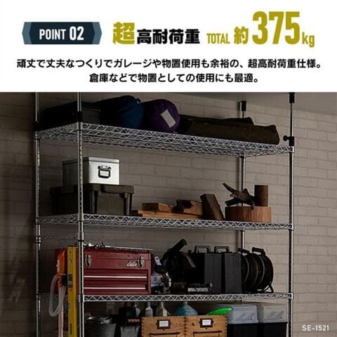頑丈で丈夫なつくりでガレージや物置使用も余裕の、超高耐荷重仕様。