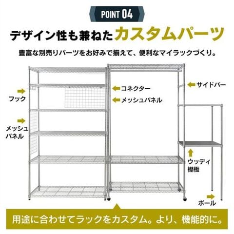 豊富な別売りパーツをお好みで揃えて、便利なマイラックづくり。