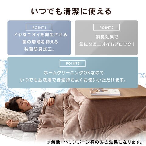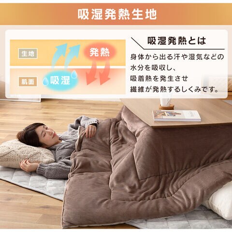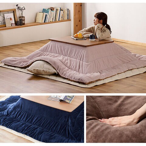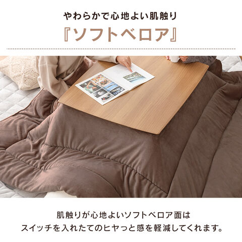 暖かさをキープするソフトベロア素材のこたつ掛布団です。