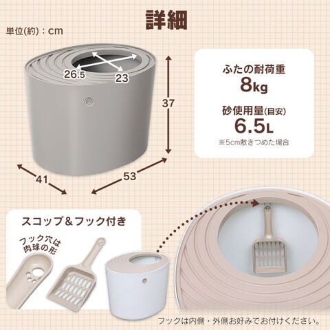 ふた全体が外せるので掃除がしやすく、砂の入れ替えも楽にできます。